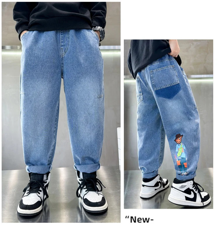 Pantalon ample à motif dessin animé, parfait pour un look tendance et confortable. Idéal pour les garçons de 6 à 14 ans, ce modèle est pensé pour la mi-saison (printemps et automne). Un incontournable du vestiaire des grands garçons !